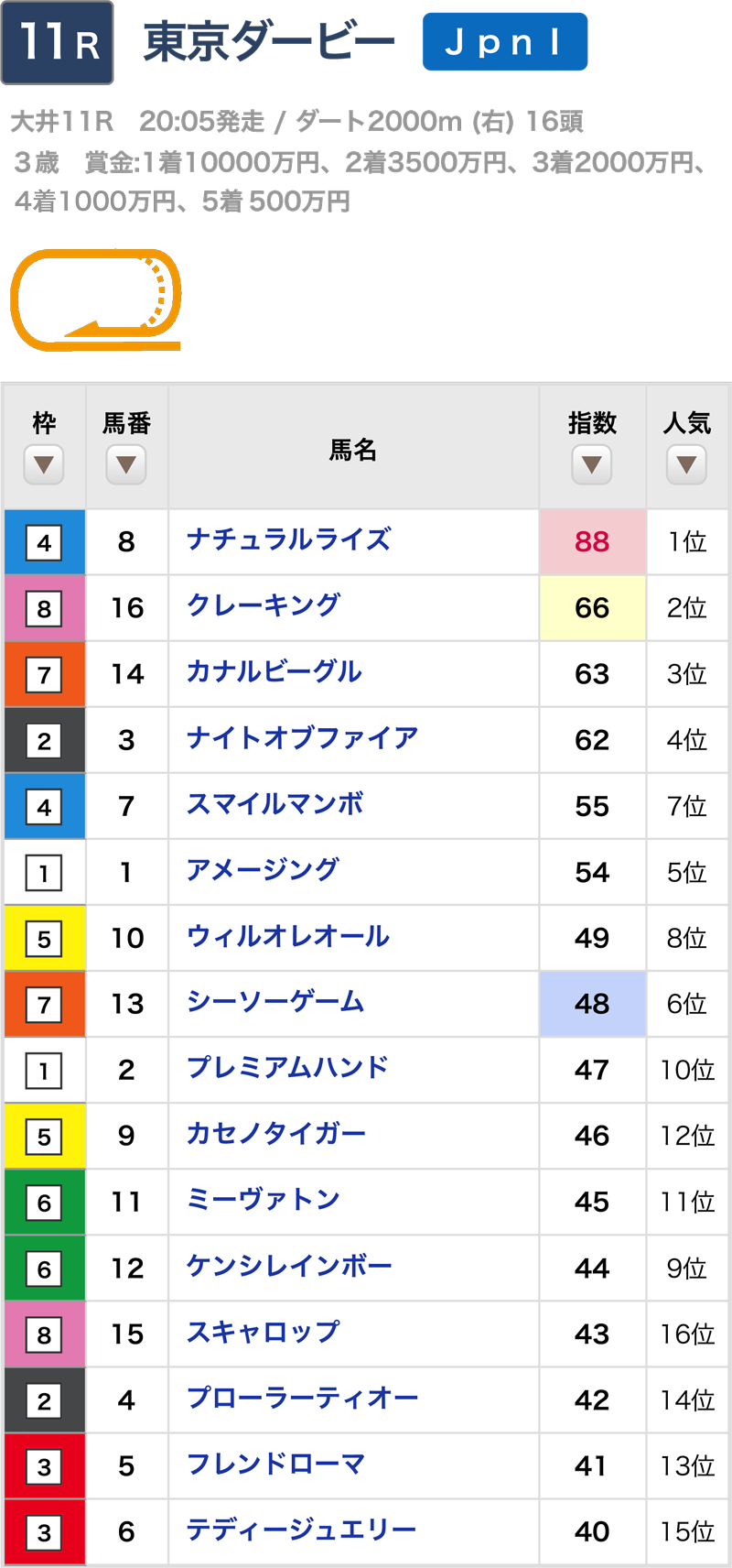 さらには、コンピ指数に騎手成績を掛け合わせた「コンピ×騎手」も全場で掲載!